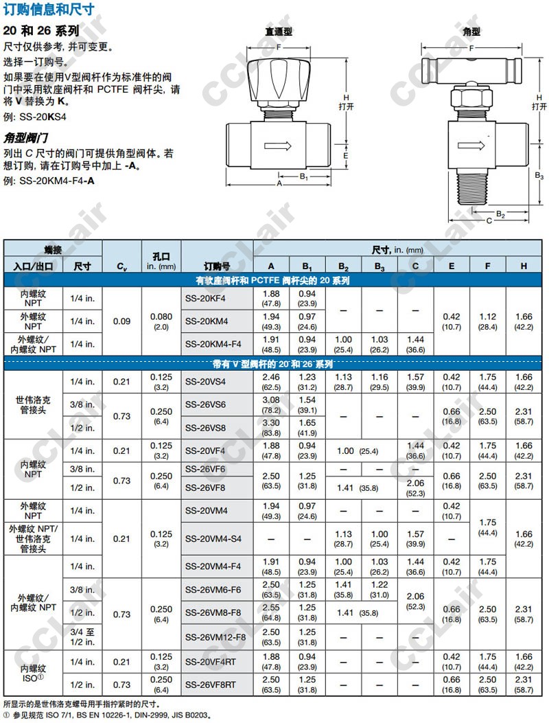 世偉洛克(swagelok),SS-20KF4,SS-20KM4,SS-20VS4,SS-20VF4,SS-26VF8,SS-20VM4,SS-20VF4RT,SS-26VF6,整體式閥帽針閥