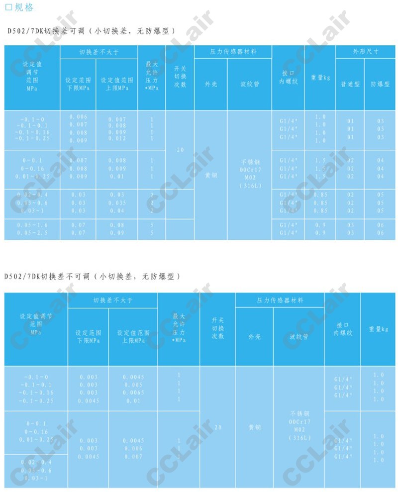 D520/7DD,壓力控制器,CCLair