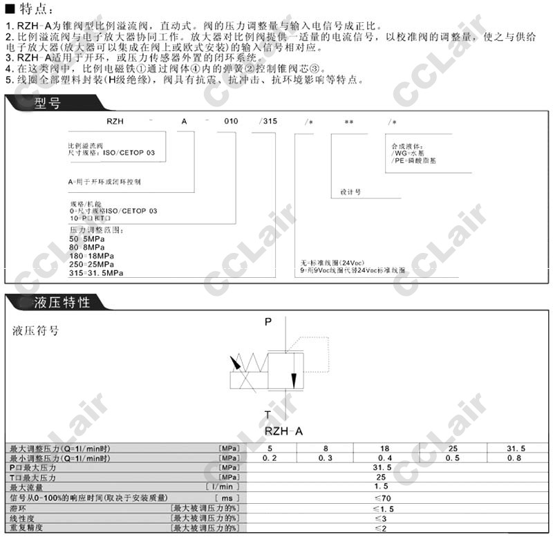 RZH-A-010/50,RZH-A-010/80,RZH-A-010/180,RZH-A-010/250,RZH-A-010/315,比例溢流閥 |