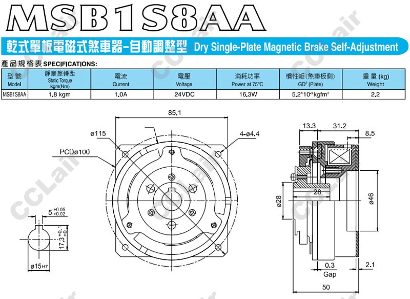 MSB1S8AA,電磁剎車器,CCLair