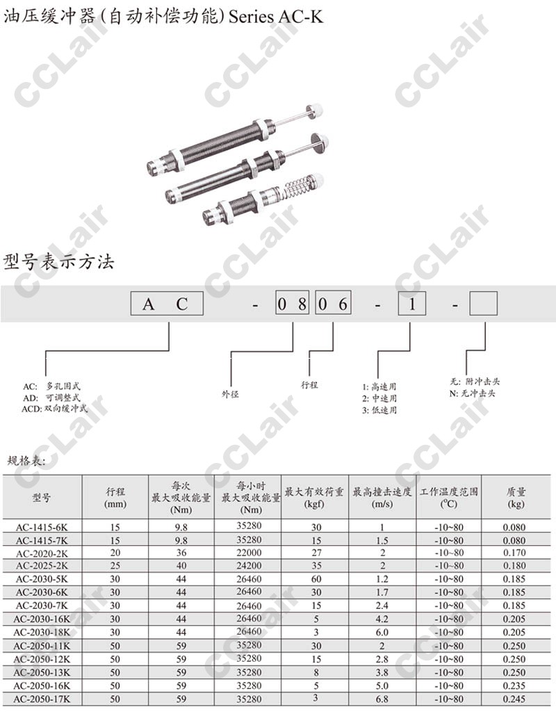 AC-1415-6K,AC-1415-7K,AC-2020-2K,AC-2025-2K,AC-2030-5K,AC-2030-6K,AC-2030-7K,ARK油壓緩沖器