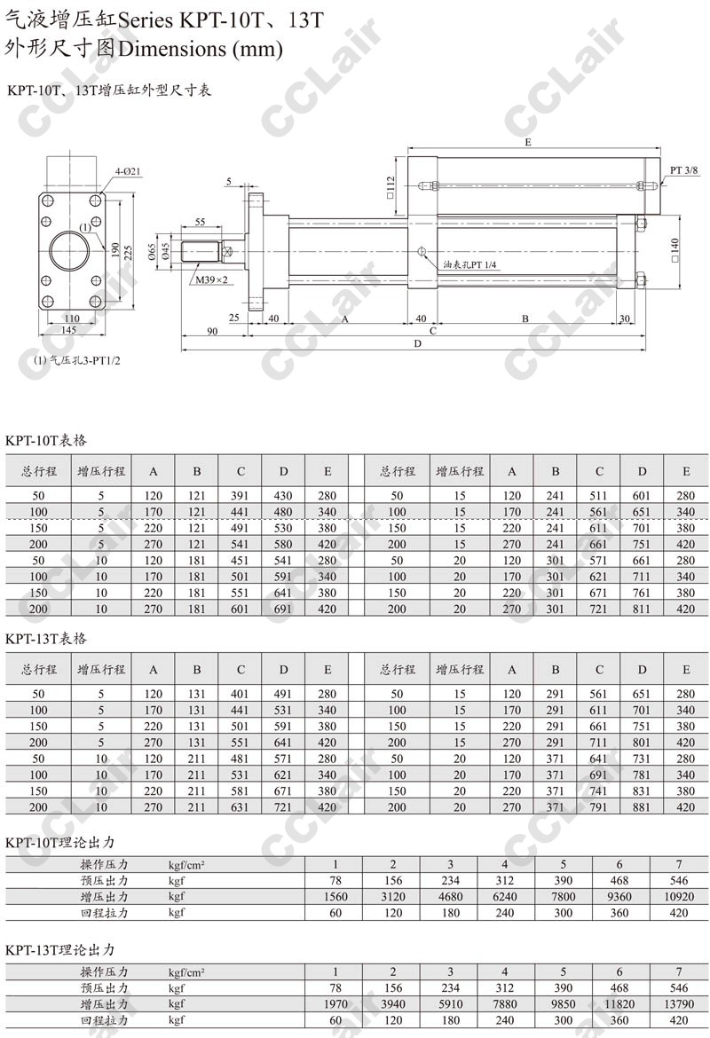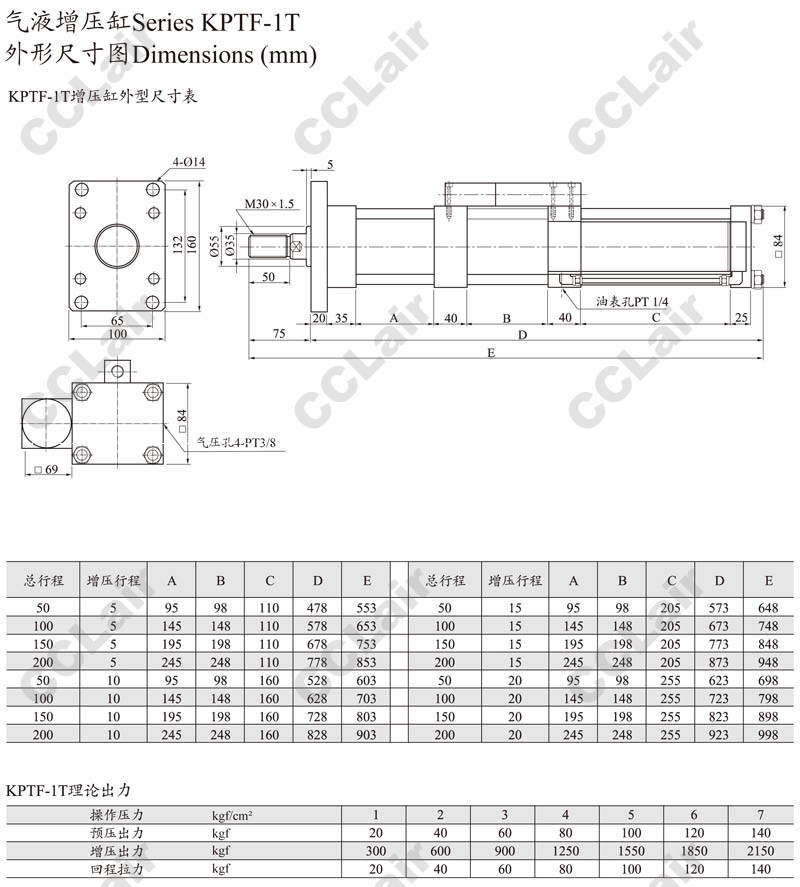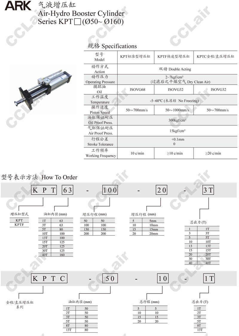 KPT63,KPT80,KPT100,KPT125,KPT160,KPTF63,KPTF80,KPTF100,KPTF125,KPTF160,ARK氣液增壓缸