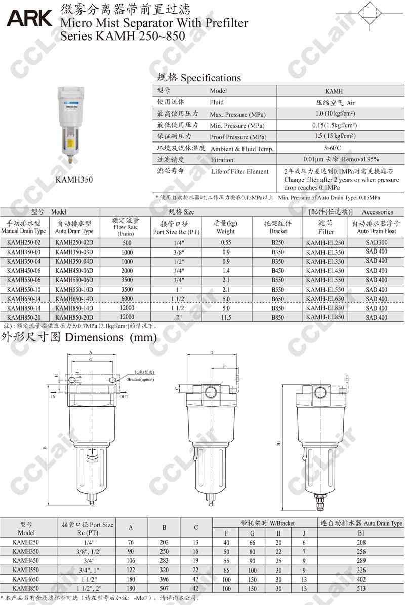 KAMH250,KAMH350,KAMH450,KAMH550,KAMH650,KAMH850,KAMH350-03D,KAMH550-10,ARK油霧分離器