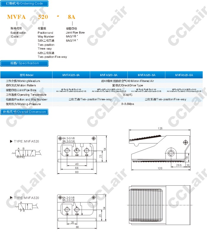 MVFA320-6A,MVFA320-8A,MVFA520-6A,MVFA520-8A,腳閥