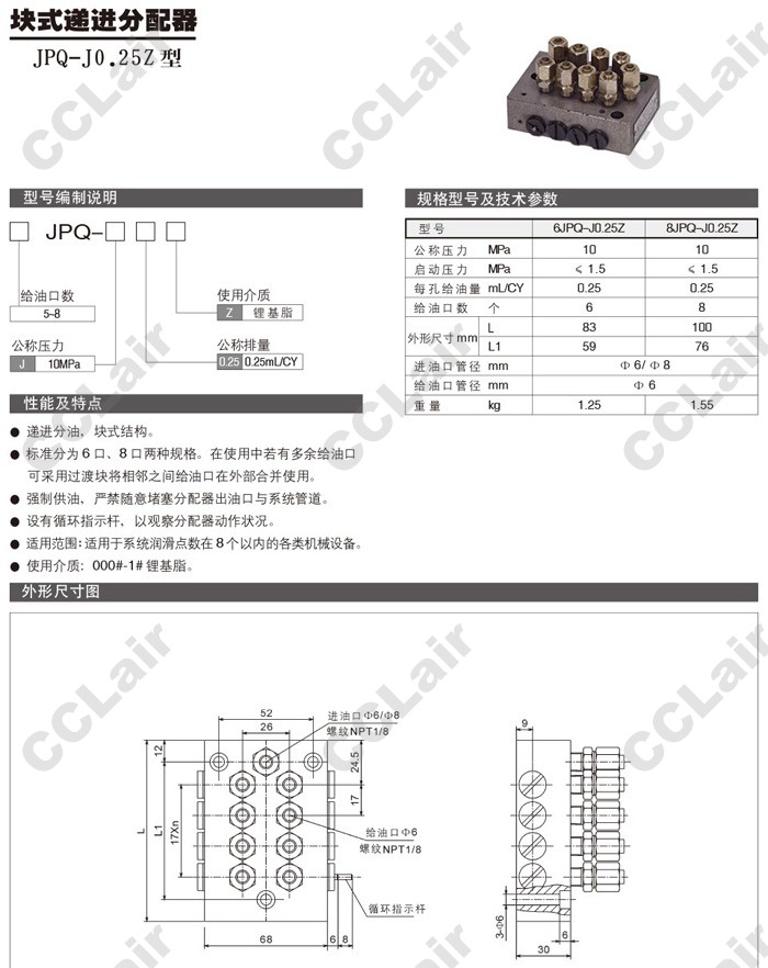 6JPQ-J0.25Z,8JPQ-J0.25Z,塊式遞進(jìn)分配器