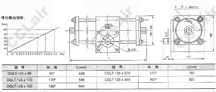 QGLT-125×90,QGLT-125×170,QGLT-125×180,齒輪齒條式擺動氣缸
