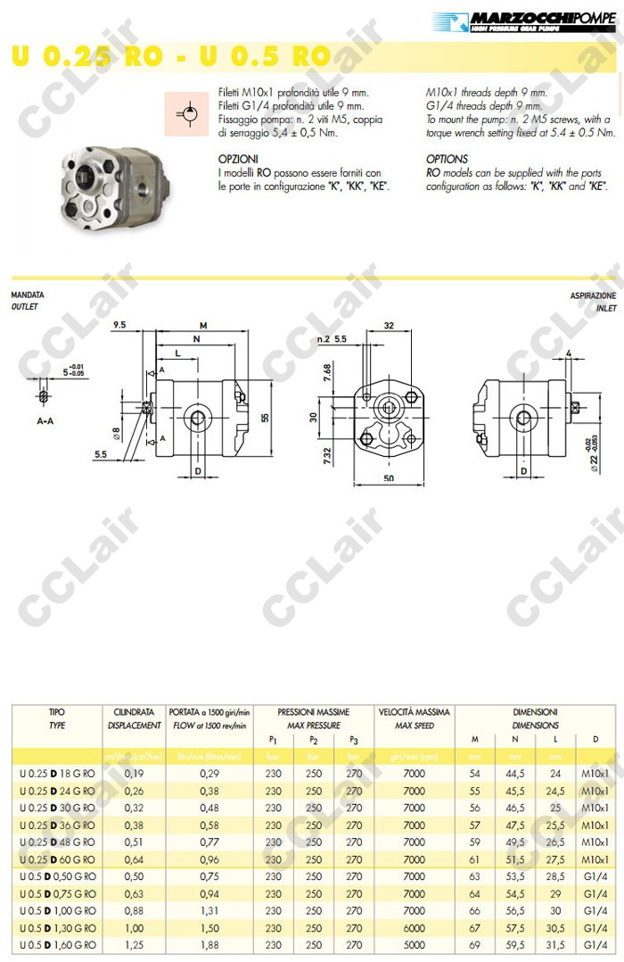U0.25D,U0.5D,U0.25D18GRO,U0.25D24GRO,U0.25D30GRO,U0.25D36GRO,U0.5D0.75GRO,MARZOCCHI齒輪微泵