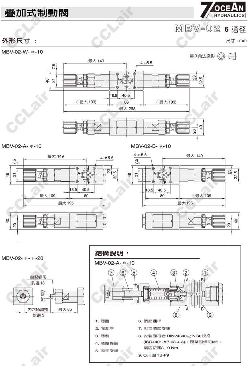 MBV-02-W,MBV-02-A,MBV-02-B,MBV-02-W-1-10,MBV-02-A-1-20,MBV-02-B-3-20,7OCEAN七洋疊加式壓力制動閥