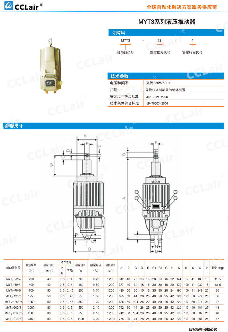 MYT3-22/4,MYT3-40/4,MYT3-70/5,MYT3-125/5,MYT3-125E/5,MYT3-200/8,MYT3-200E/8,MYT3-315/8,液壓推動(dòng)器