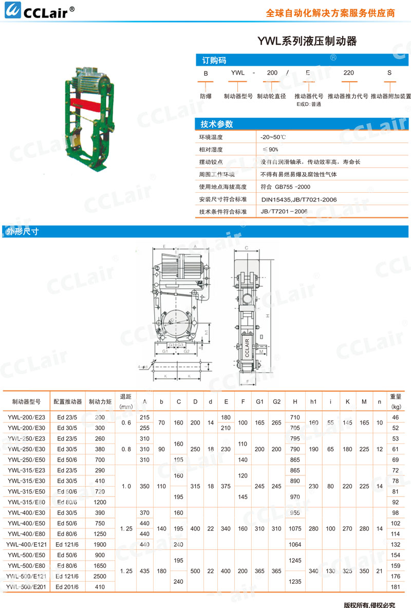 YWL-200,YWL-250,YWL-315,YWL-400,YWL-500,YWL-400/E121,YWL-200/E23,BYWL-200/E23,液壓制動(dòng)器