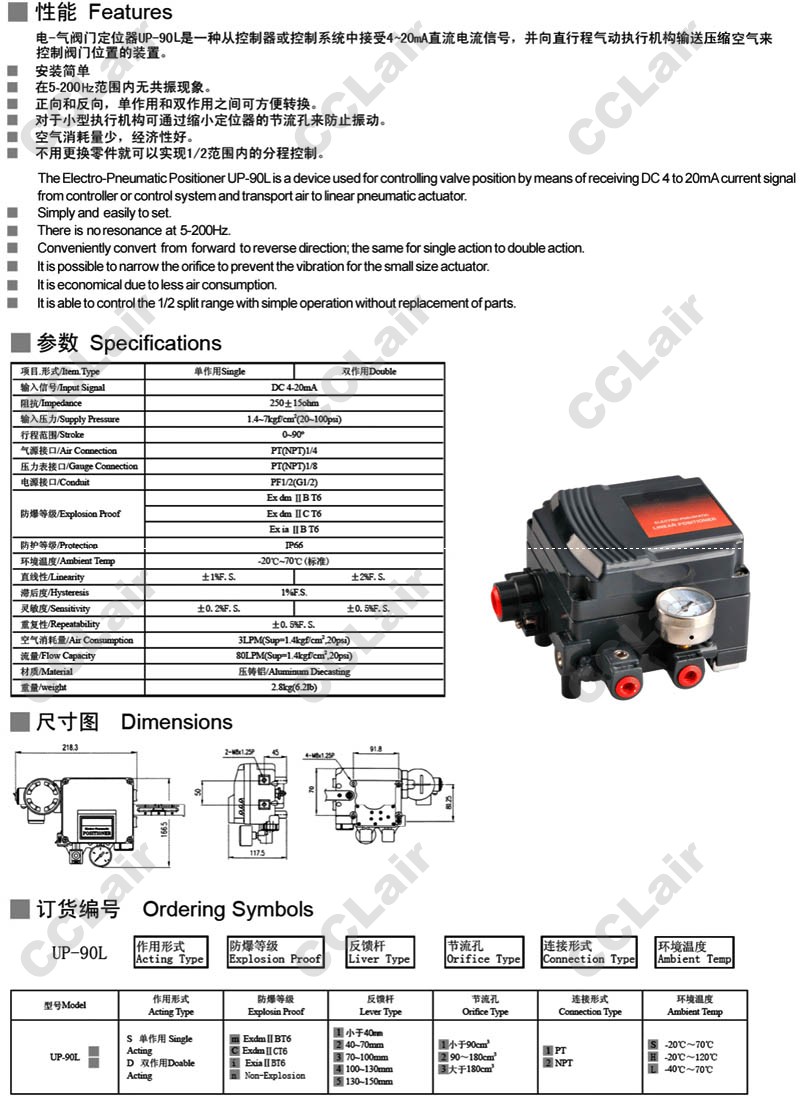 UNIWO,UP-90LS,UP-90LD,閥門定位器