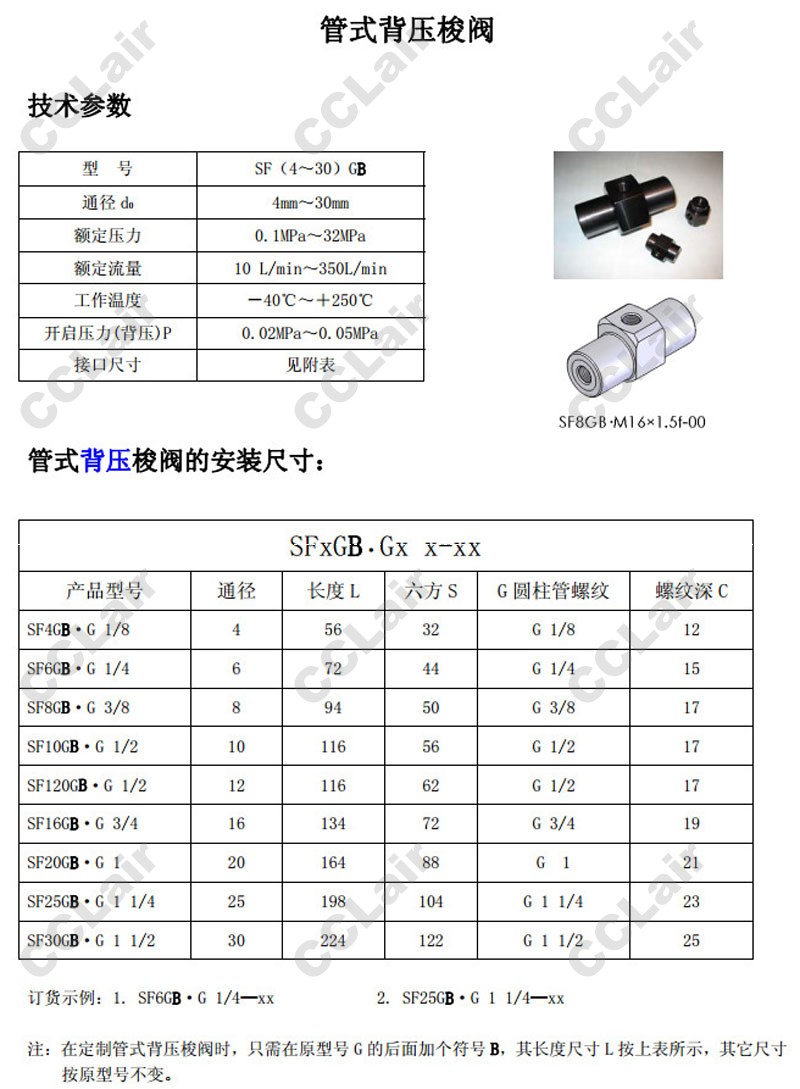 SF4GB·G1/8,SF6GB·G1/4,SF8GB·G3/8,SF10GB·G1/2,SF12GB·G1/2,SF16GB·G3/4,SF20GB·G1,管式背壓梭閥