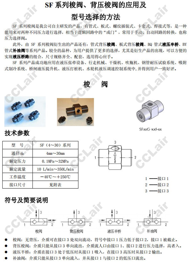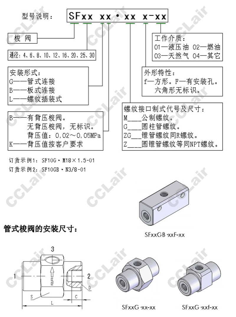 SF4G·M10×1,SF6G·M12×1.5,SF8G·M14×1.5,SF10G·M18×1.5,SF12G·M22×1.5,SF20G·M33×2,梭閥