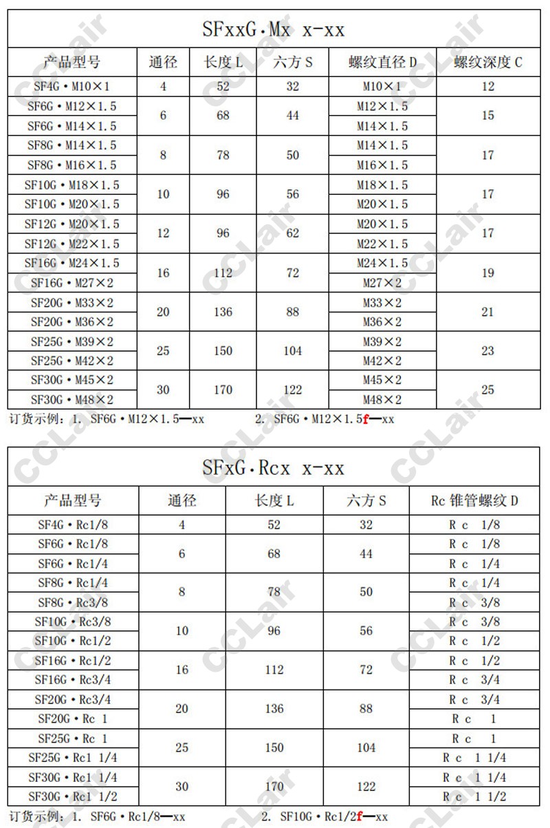 SF4G·M10×1,SF6G·M12×1.5,SF8G·M14×1.5,SF10G·M18×1.5,SF12G·M22×1.5,SF20G·M33×2,
