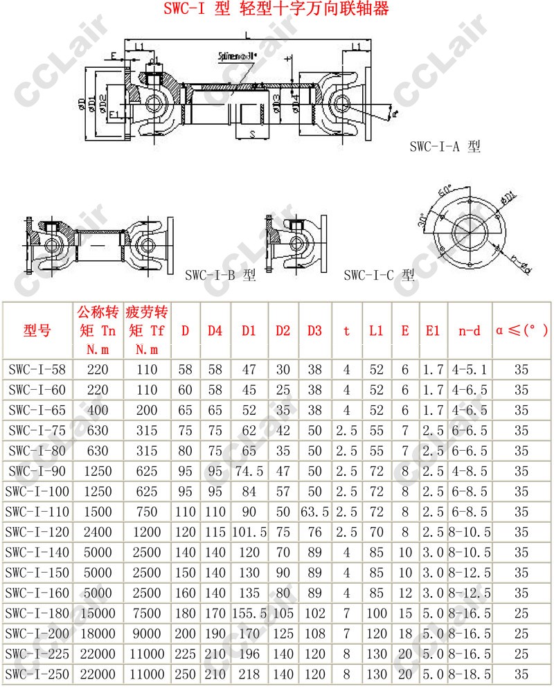 SWC-I,SWC-I-58,SWC-I-60,SWC-I-75,SWC-I-80,SWC-I-90,SWC-I-100,SWC-I-200,十字萬(wàn)向聯(lián)軸器
