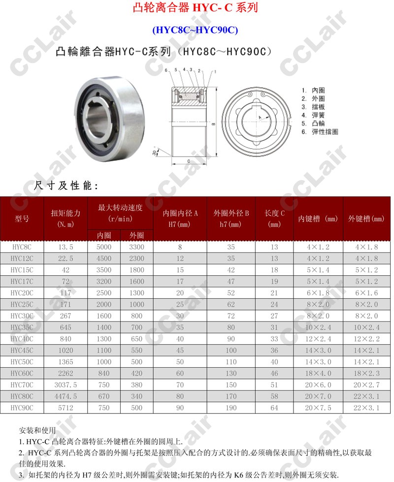 HYC8C,HYC12C,HYC25C,HYC30C,HYC35C,HYC40C,HYC50C,HYC60C,HYC70C,HYC80C,HYC90C,凸輪離合器