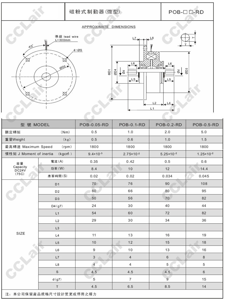POB-0.05-RD,POB-0.1-RD,POB-0.2-RD,POB-0.5-RD,微型磁粉式制動器