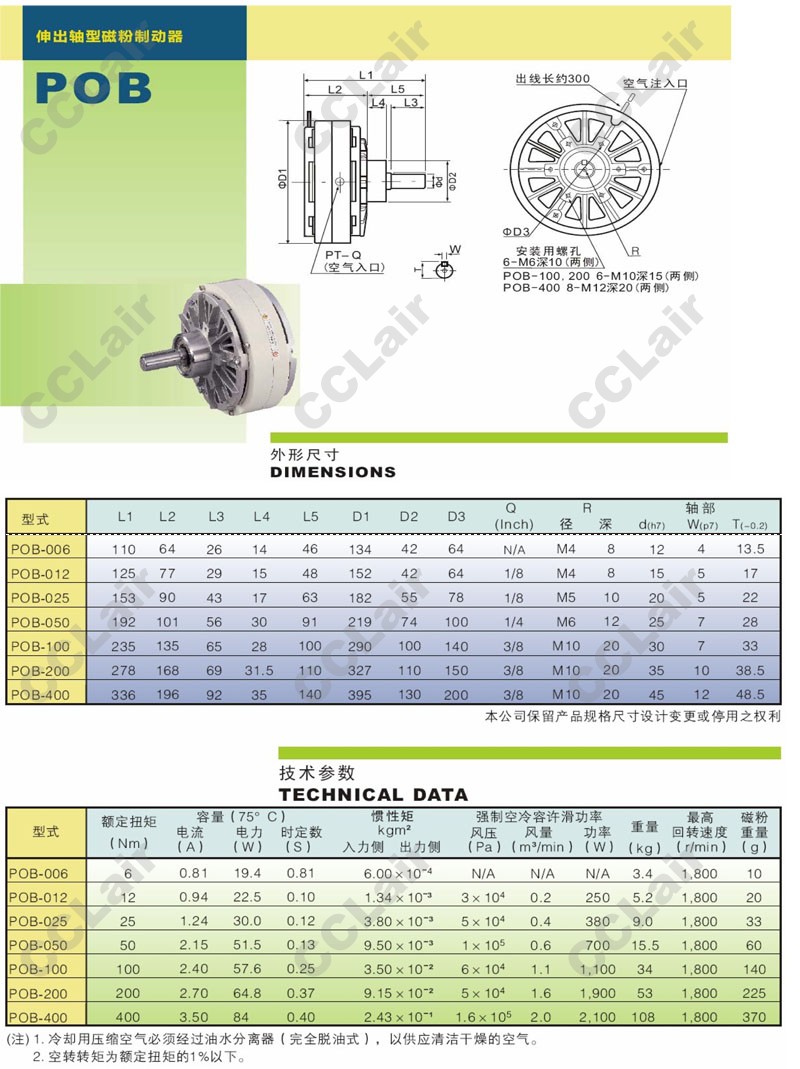 POB-006,POB-012,POB-025,POB-050,POB-100,POB-200,POB-400,伸出軸型磁粉制動器
