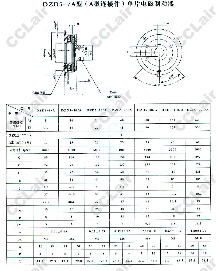 DZD5-5/A,DZD5-10/A,DZD5-20/A,DZD5-40/A,DZD5-80/A,DZD5-160/A,DZD5-320/A,單片電磁制動器