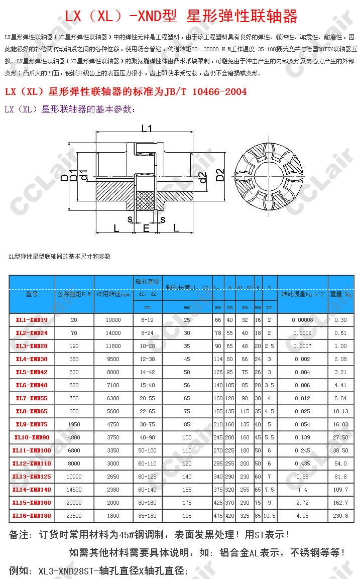 XL1-XND19,XL2-XND24,XL4-XND38,XL5-XND42,XL7-XND55,XL8-XND65,XL9-XND75,XL10-XND90,星形彈性聯(lián)軸器