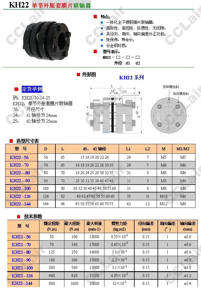 KH22-56,KH22-70,KH22-80,KH22-90,KH22-100,KH22-126,KH22-144,單節(jié)外脹套膜片聯(lián)軸器