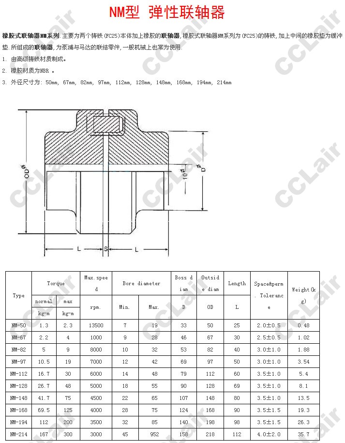 NM-50,NM-67,NM-82,NM-97,NM-112,NM-128,NM-148,NM-168,NM-194,NM-214,彈性聯(lián)軸器
