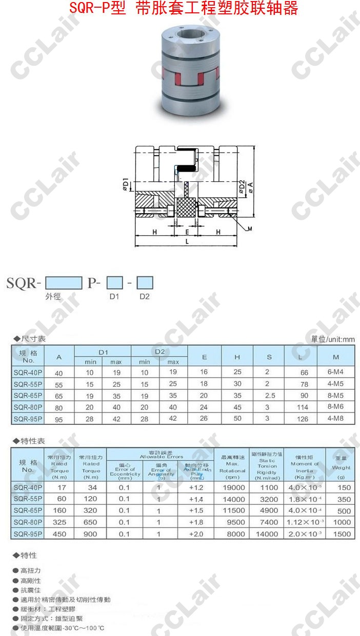 SQR-40P,SQR-55P,SQR-65P,SQR-80P,SQR-95P,帶脹套工程塑膠聯(lián)軸器