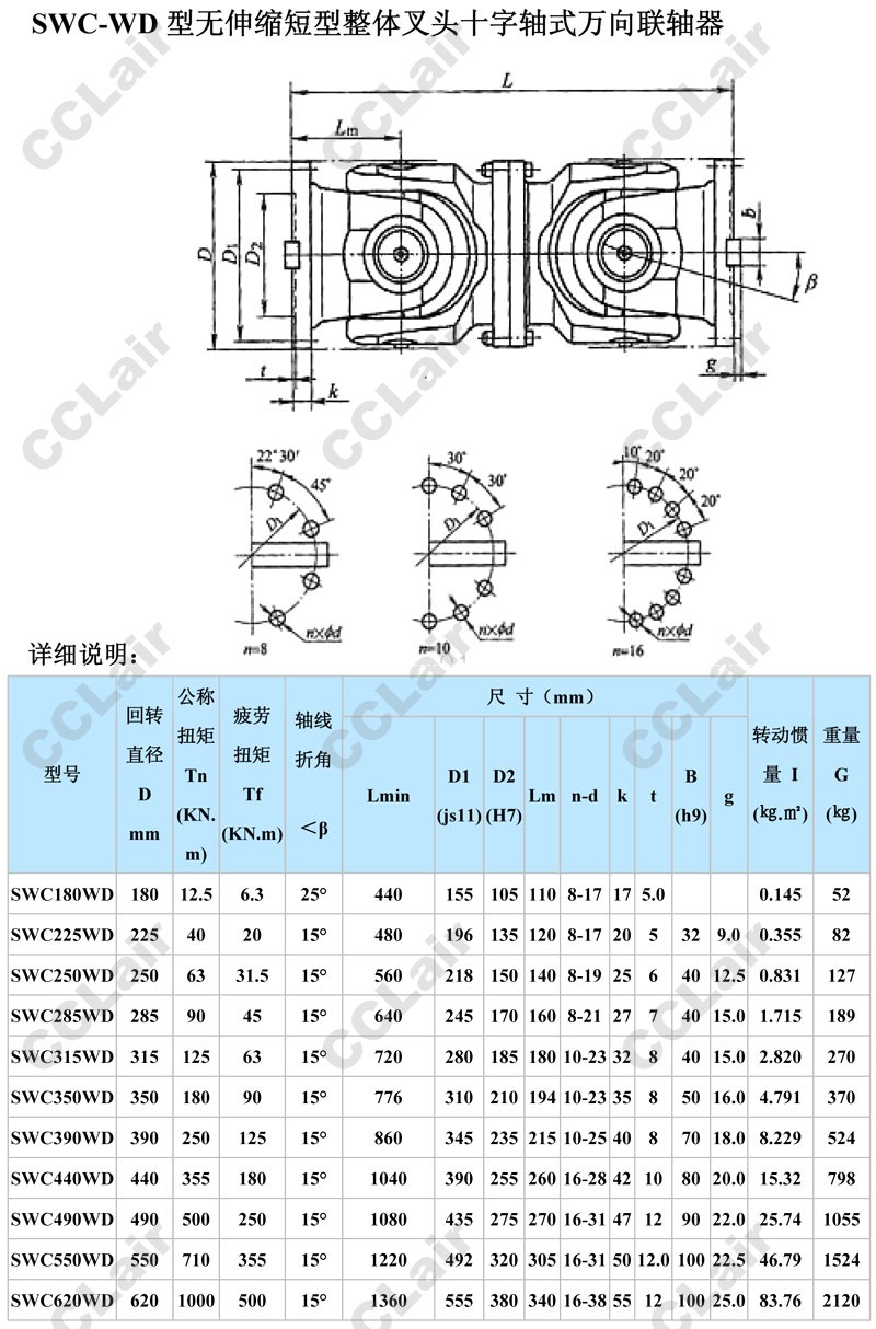 SWC180WD,SWC285WD,SWC315WD,SWC350WD,SWC490WD,SWC550WD,SWC620WD,無(wú)伸縮短式萬(wàn)向聯(lián)軸器