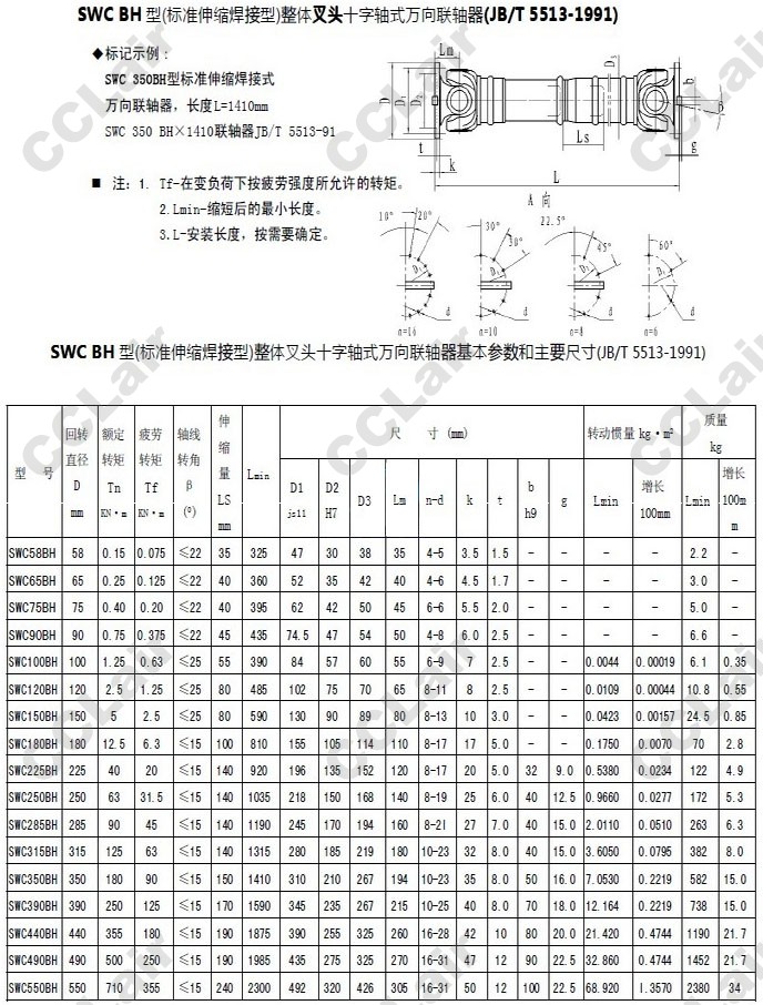 SWC58BH,SWC65BH,SWC75BH,SWC90BH,SWC100BH,SWC120BH,SWC285BH,SWC390BH,SWC440BH,萬向聯(lián)軸器