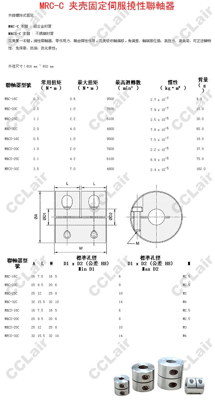 MRC-16C,MRC-20C,MRC-25C,MRC-32C,MRCS-16C,MRCS-20C,MRCS-25C,MRCS-32C,夾緊固定伺服撓性聯(lián)軸器