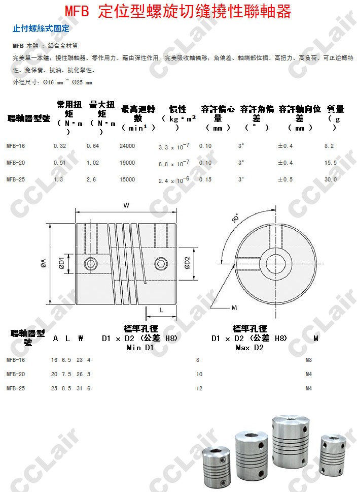 MFB-16,MFB-20,MFB-25,定位型螺旋切縫撓性聯(lián)軸器