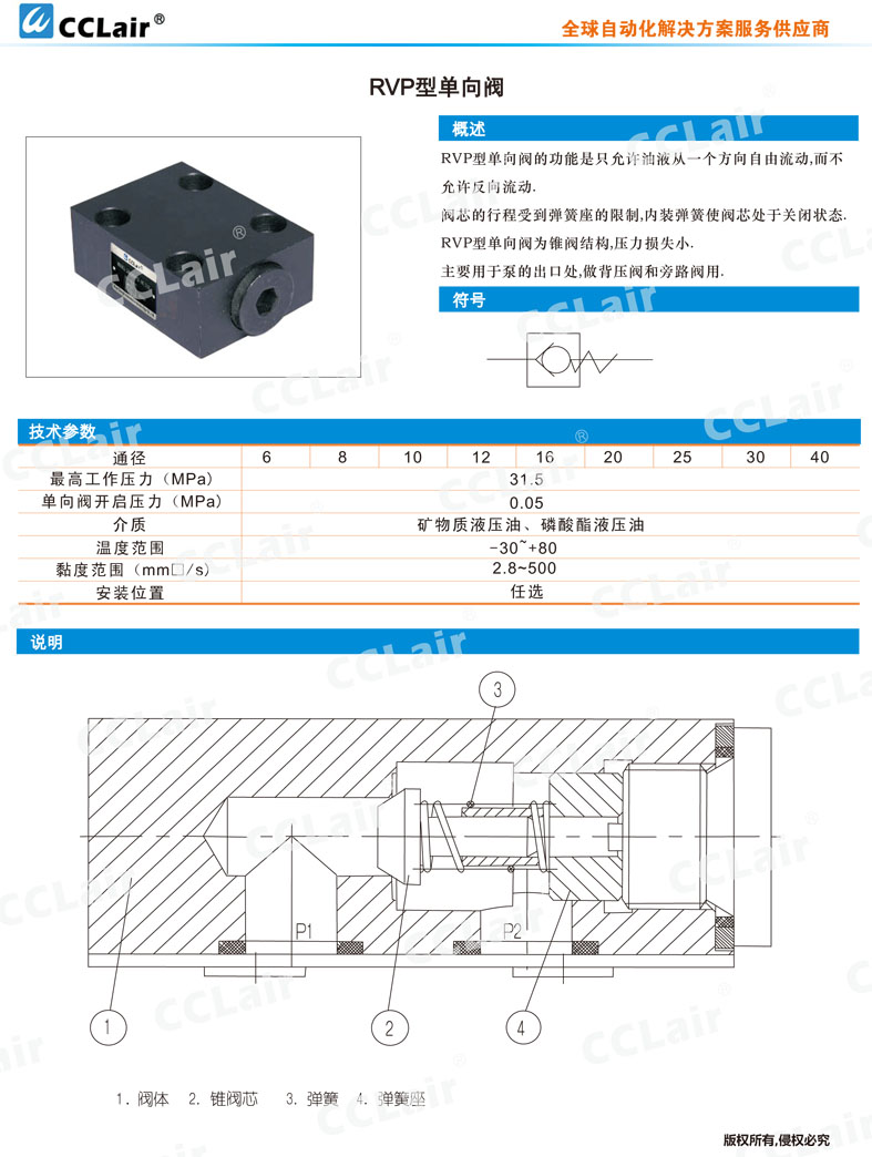 RVP610,RVP810,RVP1010,RVP1210,RVP1610,RVP2010,RVP2510V,RVP3010V,RVP4010V,單向閥