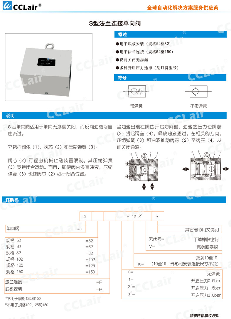 S52F,S62F,S82F,S102F,S125F,S150F,S52P,S62P,S82P,S102P,S125P,S150P,法蘭連接單向閥