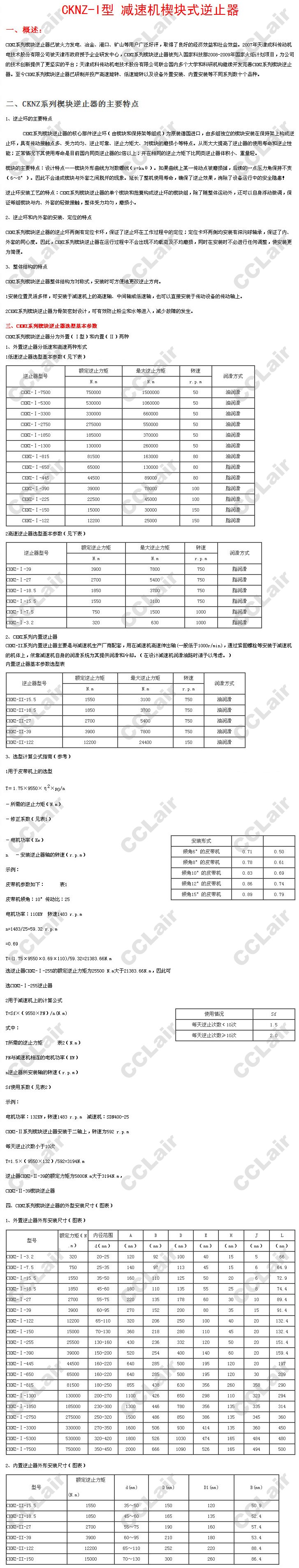 CKNZ-I-3.2,CKNZ-II-15.5,CKNZ-II-27,CKNZ-II-39,CKNZ-II-122,CKNZ-I-650,CKNZ-I-445,減速機楔塊式逆止器