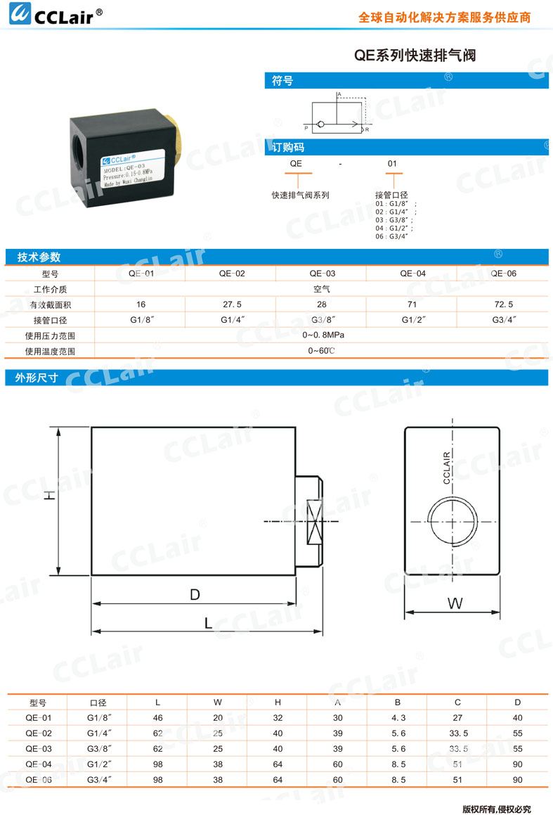 QE-01,QE-02,QE-03,QE-04,QE-06,快速排氣閥
