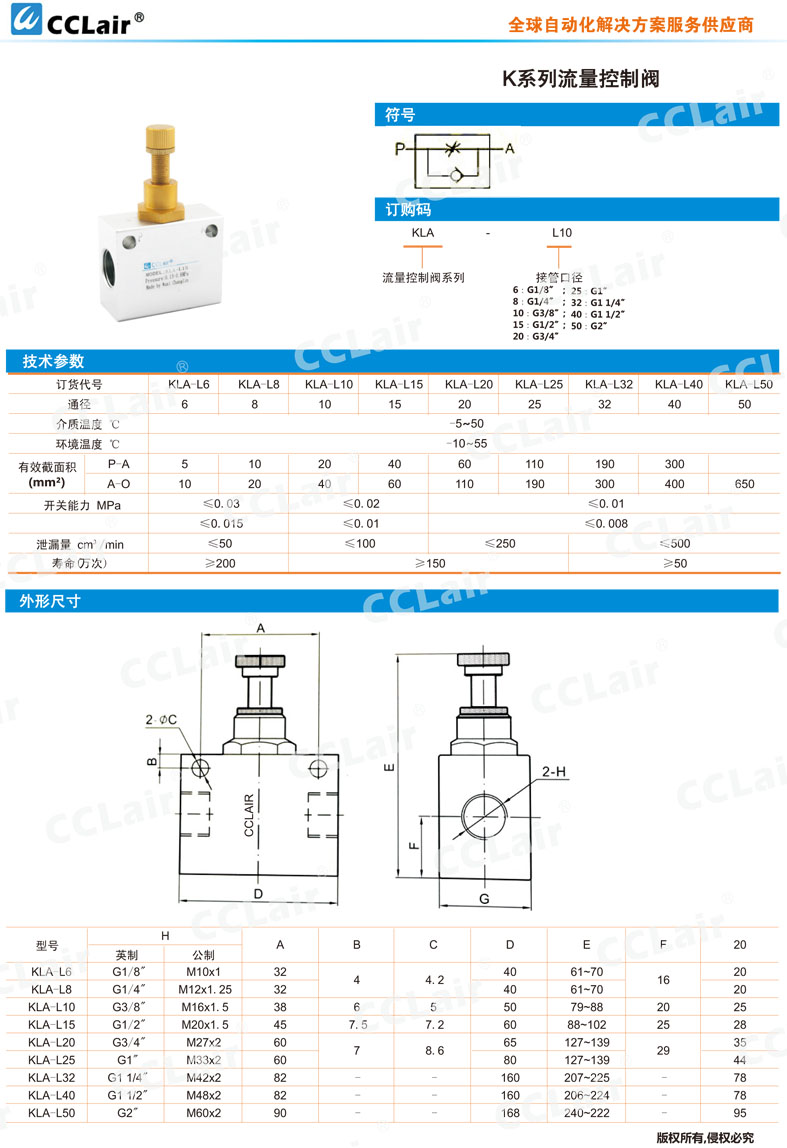 KLA-L6,KLA-L8,KLA-L10,KLA-L15,KLA-L20,KLA-L25,KLA-L32,KLA-L40,KLA-L50,單向節(jié)流閥