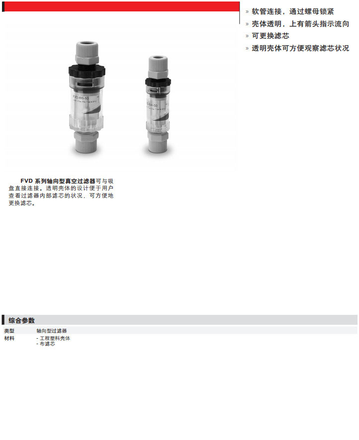 FVD-6/4-50,FVD-8/6-50,camozzi軸向型真空過濾器