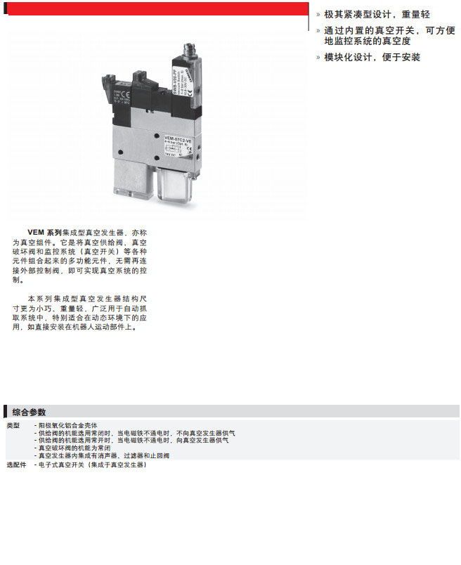 VEM-05C2-VE,VEM-05A2-VE,VEM-07C2-VE,VEM-07A2-VE,VEM-10C2-VE,VEM-10A2-VE,camozzi集成型真空發(fā)生器