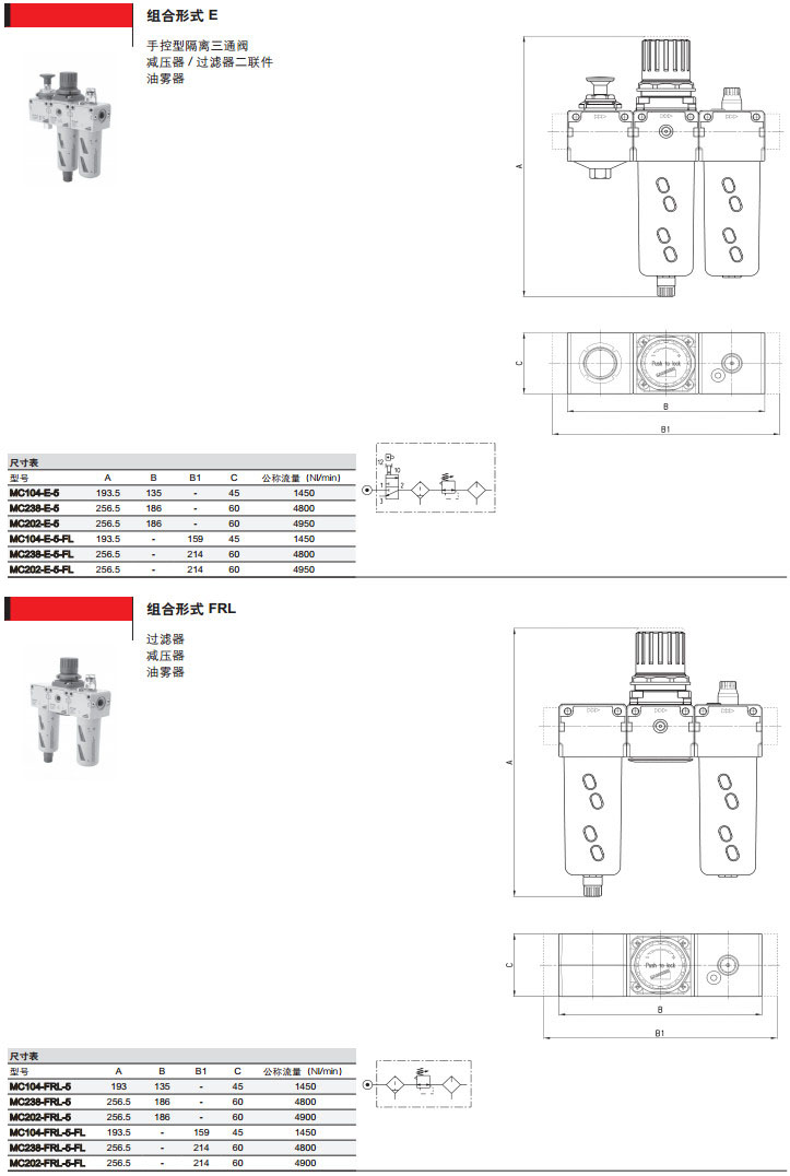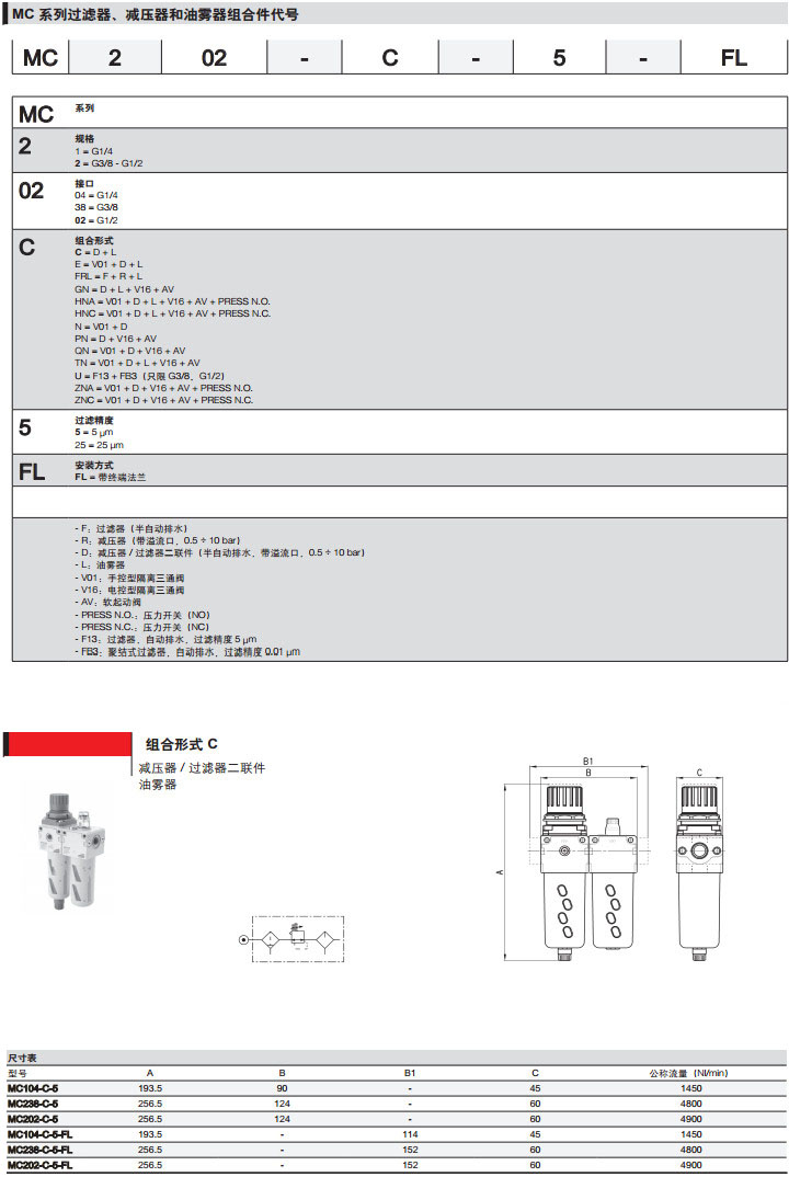 MC104-C-5,MC238-E-5,MC202-HNA-5,MC104-N-5,MC238-QN-5,MC202-U-5,camozzi氣源處理組合件