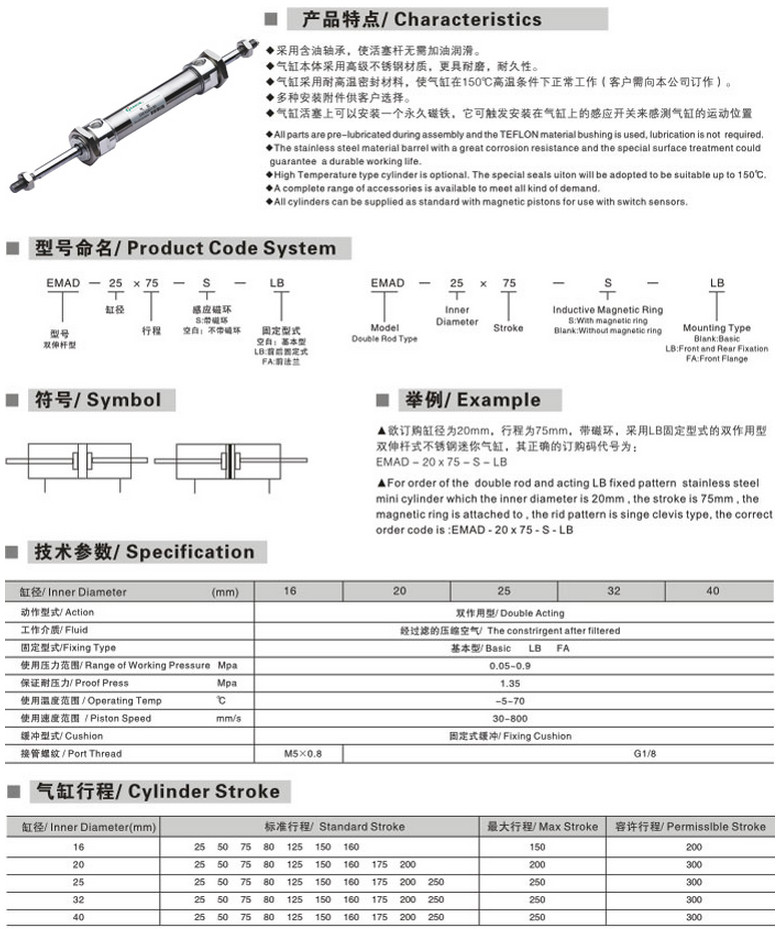 EMAD-16*25-25,EMAD-25*50-25,EMAD-32*75-25,EMAD-40*80-25,不銹鋼迷你氣缸 |