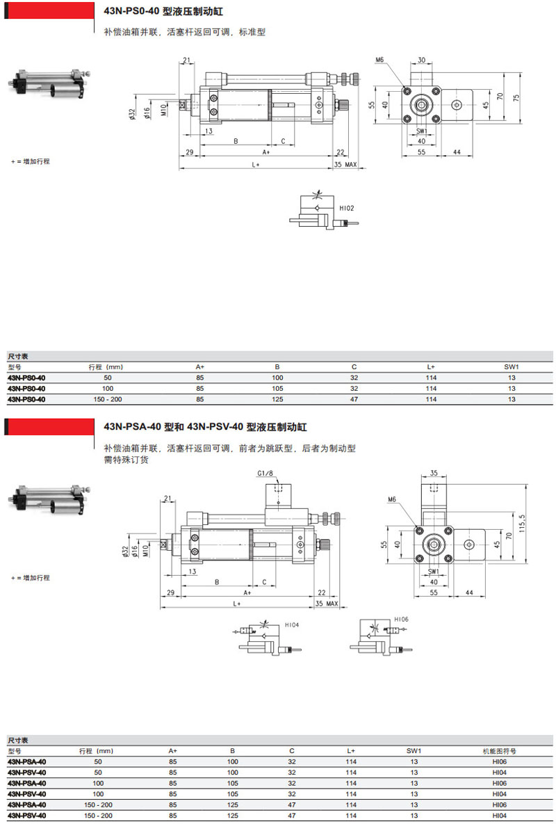 43N-LSA-40-200,43S-LTB-40-200,43N-PSV-40-200,43S-PT0-40-200,camozzi液壓制動缸
