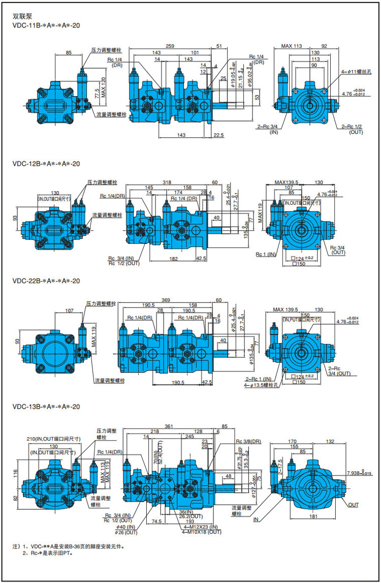VDC-1A,VDC-1B,VDC-11A,VDC-11B,VDC-12A,VDC-12B,VDC-22A,VDC-22B,VDC-13A,VDC-13B,NACHI高壓變量葉片泵 |