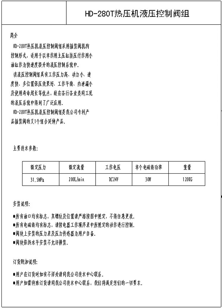 HD-280T,熱壓機液壓控制閥組