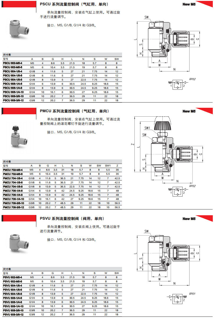 PMCU602-M5-4,PMCU702-1/8-6,PSCU602-1/8-4,PSVU706-1/8-8,camozzi流量控制閥