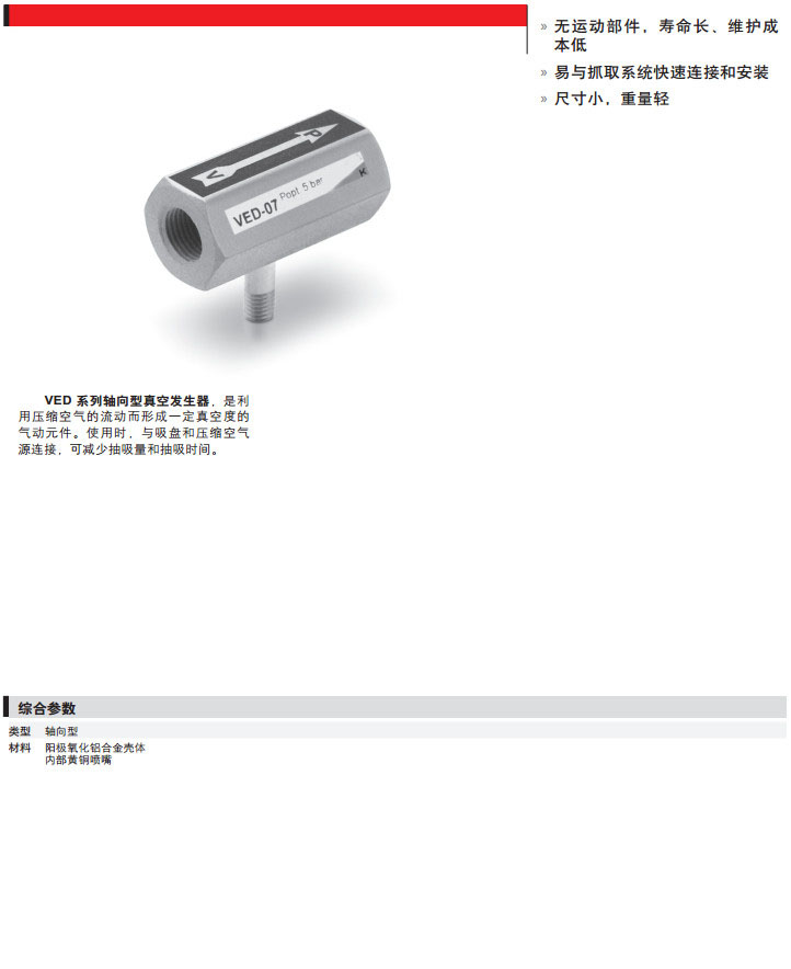 VED-07,VED-09,camozzi軸向型真空發(fā)生器