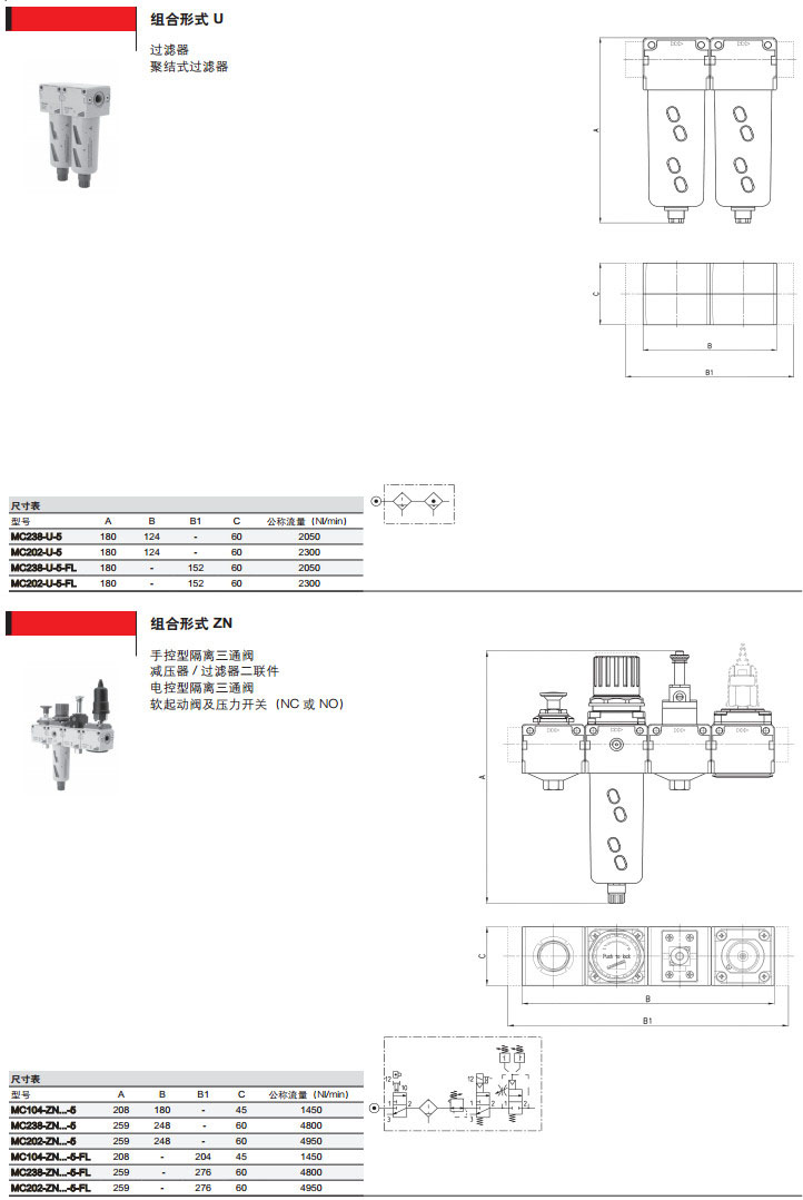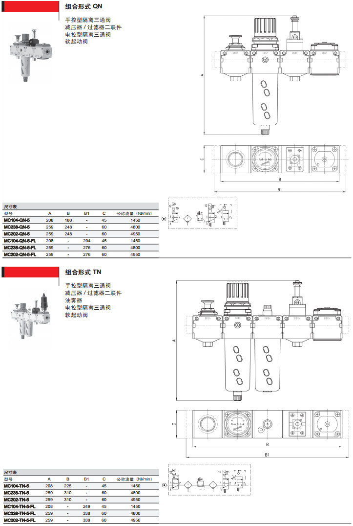 MC104-C-5,MC238-E-5,MC202-HNA-5,MC104-N-5,MC238-QN-5,MC202-U-5,camozzi氣源處理組合件