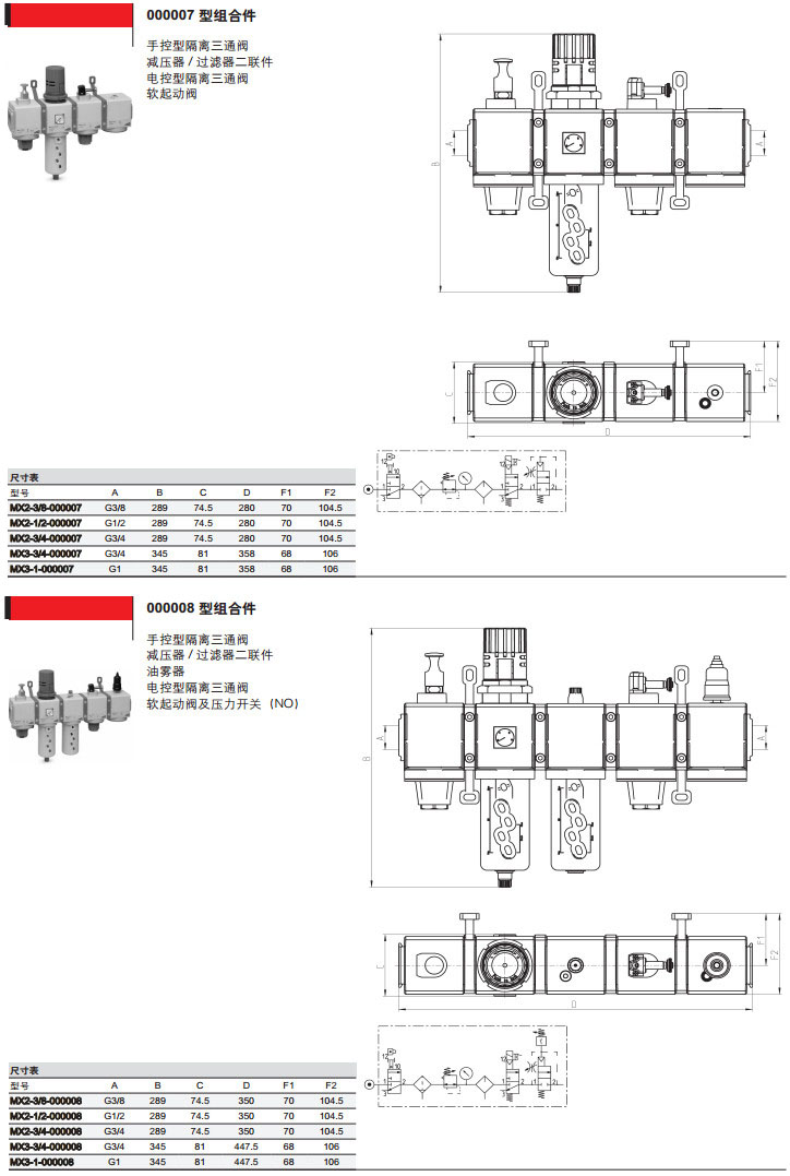 MX2-3/8-000001,MX3-1/2-000003,MX2-3/4-000010camozzi氣源處理裝置組合件