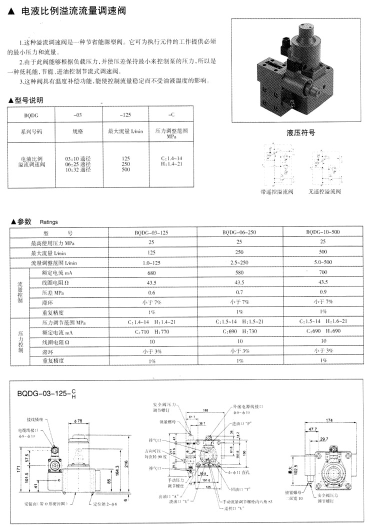 BQDG-03-125,BQDG-06-250,BQDG-10-125,電液比例溢流流量調(diào)速閥