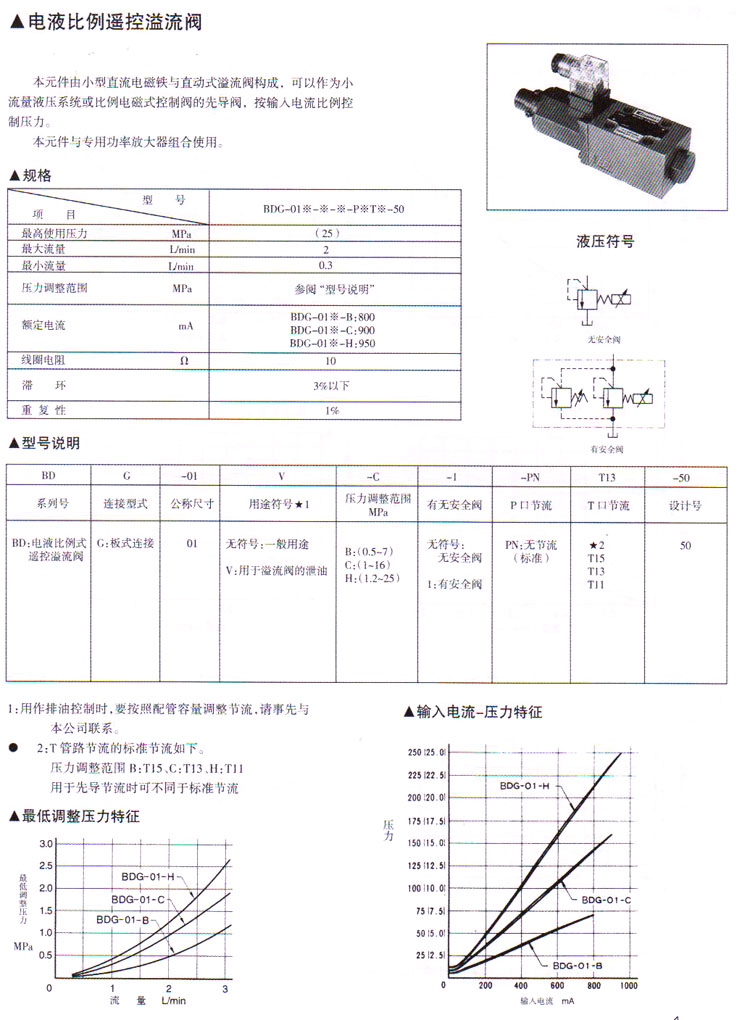 BDG-01-B,BDG-01-C,BDG-01-H,BDG-01V-B,BDG-01V-C,BDG-01V-H,電液比例遙控溢流閥 |