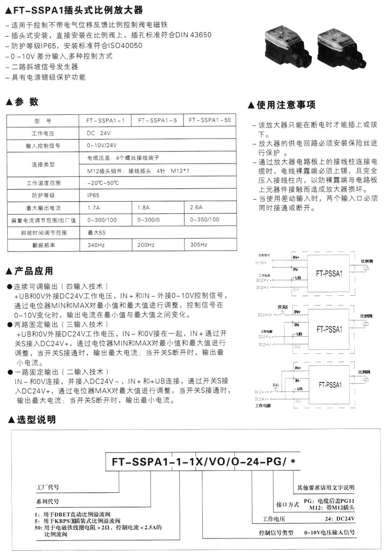 FT-SSPA1-1,FT-SSPA1-5,FT-SSPA1-50,插頭式比例放大器
